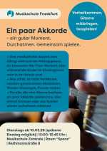 Für alle, die mittags eine musikalische Pause einlegen möchten: In entspannter Atmosphäre frischen wir Akkorde auf, spielen einfache Begleitungen und lassen Musik ganz selbstverständlich Teil des Tages werden.